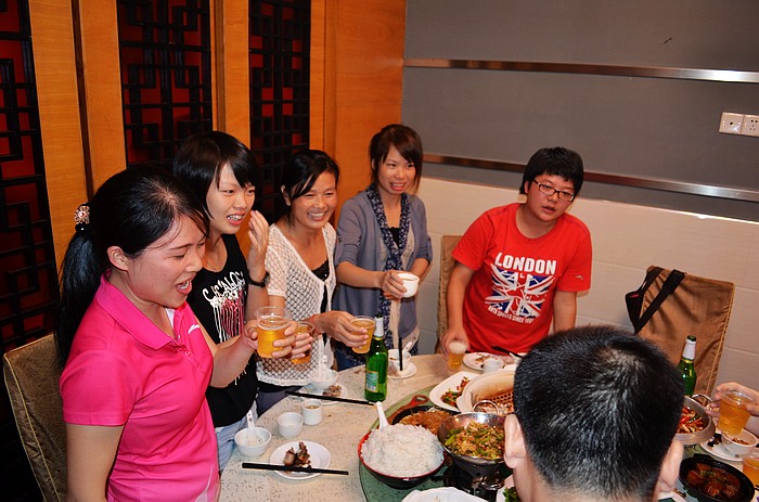 2012年9月27日晚,湖南大碗菜里一片歡欣喜慶。晚餐開(kāi)始前,公司總經(jīng)理致辭并舉杯同飲,把氣氛推向高潮。
