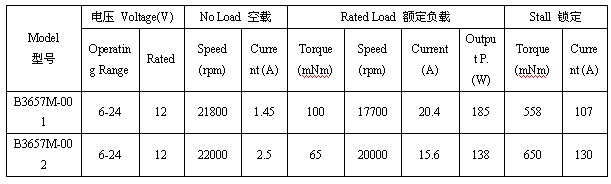 恒驅(qū)無刷電機(jī)型號(hào):B2430M、B3640M、B3657M
