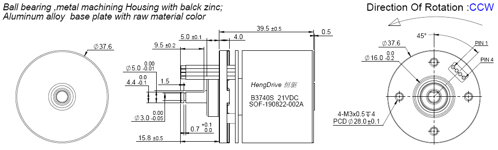 Notice: Data in this typical specification sheet are for other certain customer. Voltage, rated torque, speed, current, power and shaft extension feature & dimension can be changed to meet customer specific requirement. 注意:上述規(guī)格僅針對(duì)特定客戶,電壓、扭矩、轉(zhuǎn)速、電流、功率、輸出軸的特征和尺寸等都可以按照客戶的特殊要求進(jìn)行調(diào)整。 |