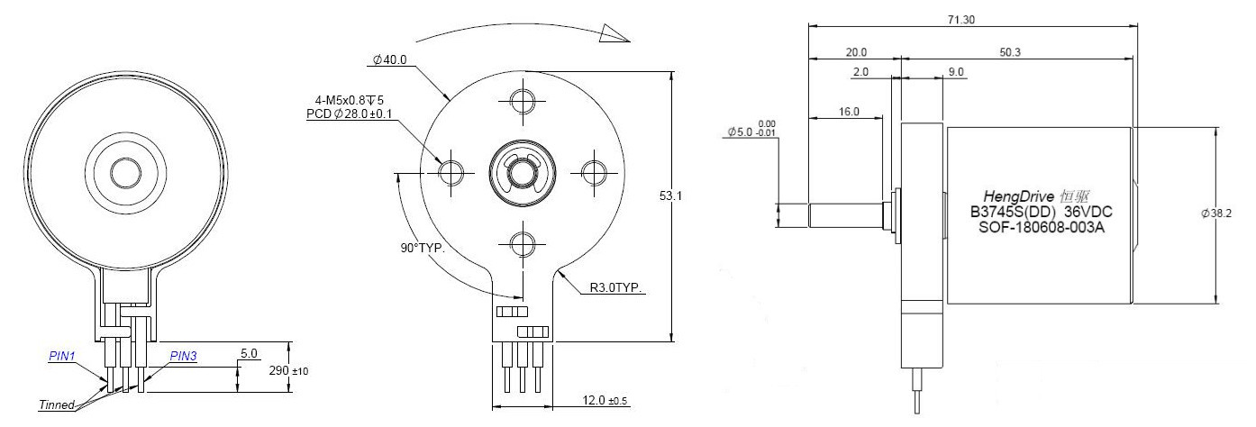 Notice: Data in this typical specification sheet are for other certain customer. Voltage, rated torque, speed, current, power and shaft extension feature & dimension can be changed to meet customer specific requirement. 注意:上述規(guī)格僅針對特定客戶,電壓、扭矩、轉(zhuǎn)速、電流、功率、輸出軸的特征和尺寸等都可以按照客戶的特殊要求進(jìn)行調(diào)整。 |