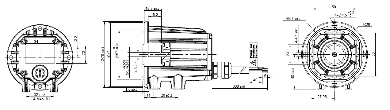 Notice: Data in this typical specification sheet are for other certain customer. Voltage, rated torque, speed, current, power and shaft extension feature & dimension can be changed to meet customer specific requirement.