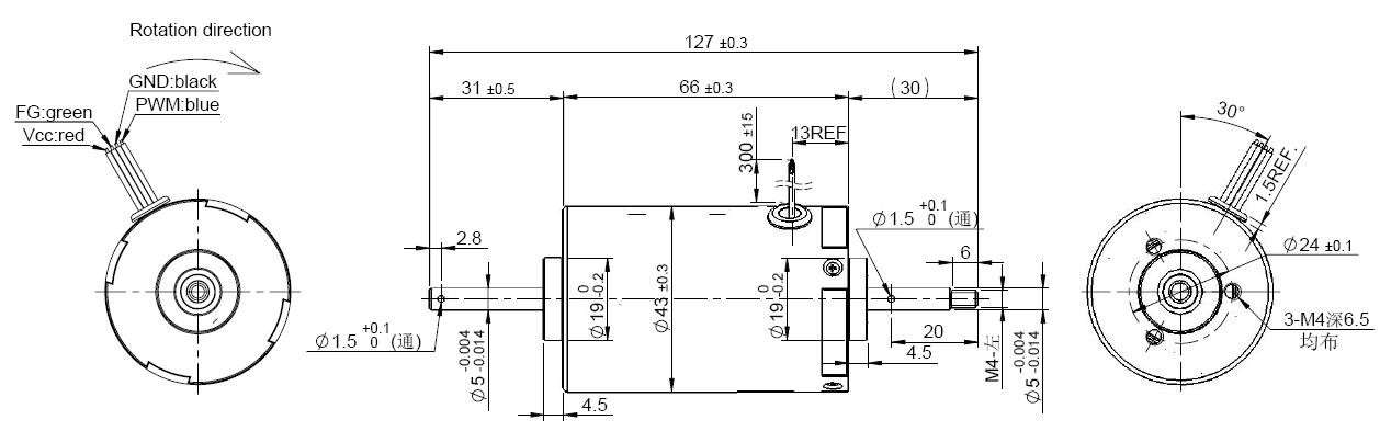 注意:上述規(guī)格僅針對特定客戶,電壓、扭矩、轉速、電流、功率、輸出軸的特征和尺寸等都可以按照客戶的特殊要求進行調整。