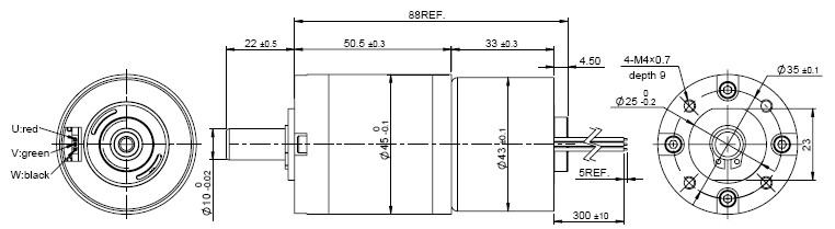 Characteristic: U, V, W wires, Low noise, Low EMI, Long life 10000-50000hrs 特征:U,V,W 三相線,低噪音,低電磁干擾,超長(zhǎng)壽命10000-50000小時(shí)