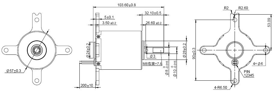 Notice: Data in this typical specification sheet are for other certain customer. Voltage, rated torque, speed, current, power and shaft extension feature & dimension can be changed to meet customer specific requirement. 注意:上述規(guī)格僅針對特定客戶,電壓、扭矩、轉速、電流、功率、輸出軸的特征和尺寸等都可以按照客戶的特殊要求進行調整。 |